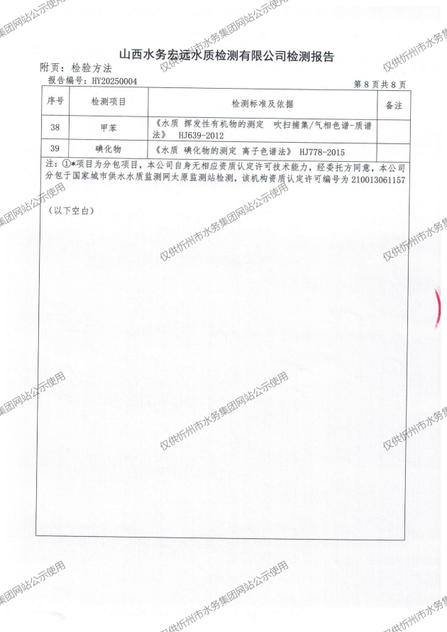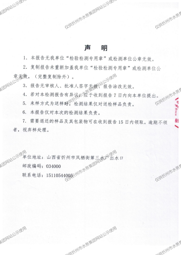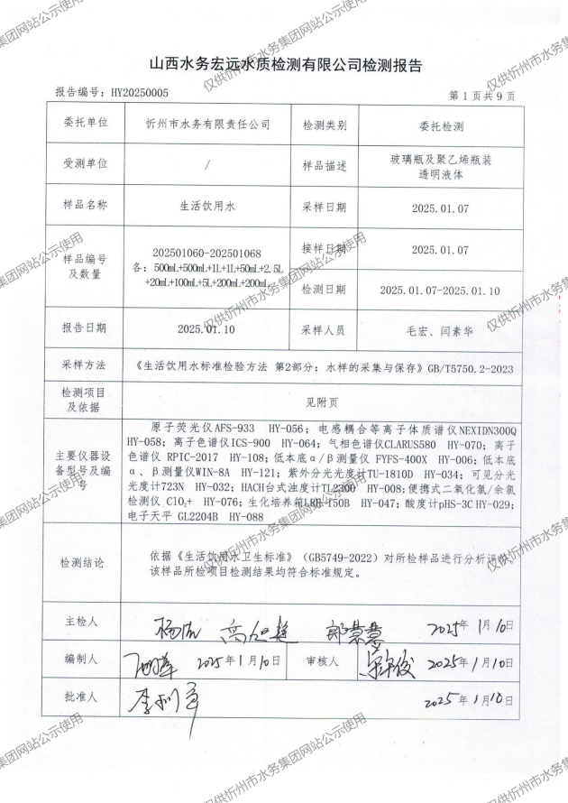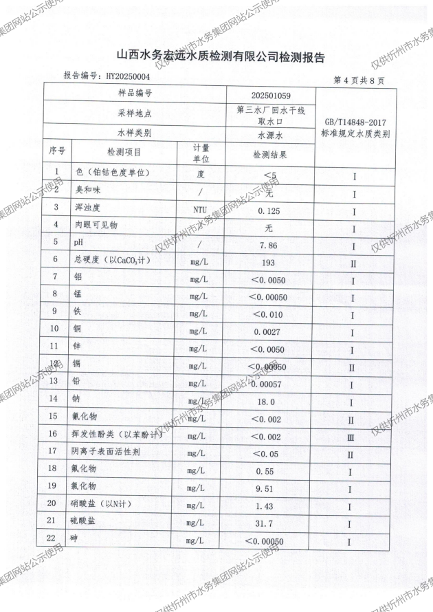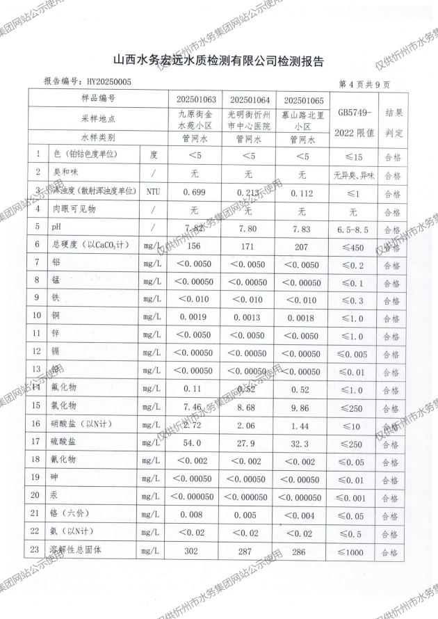 忻州城區公共供水水源水、出廠水、管網水、管網末梢水2025年01月份水質信息公示