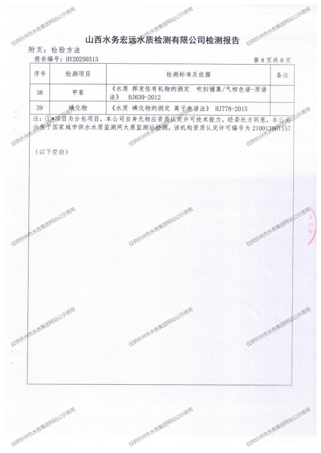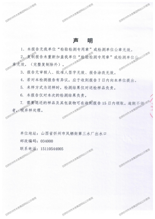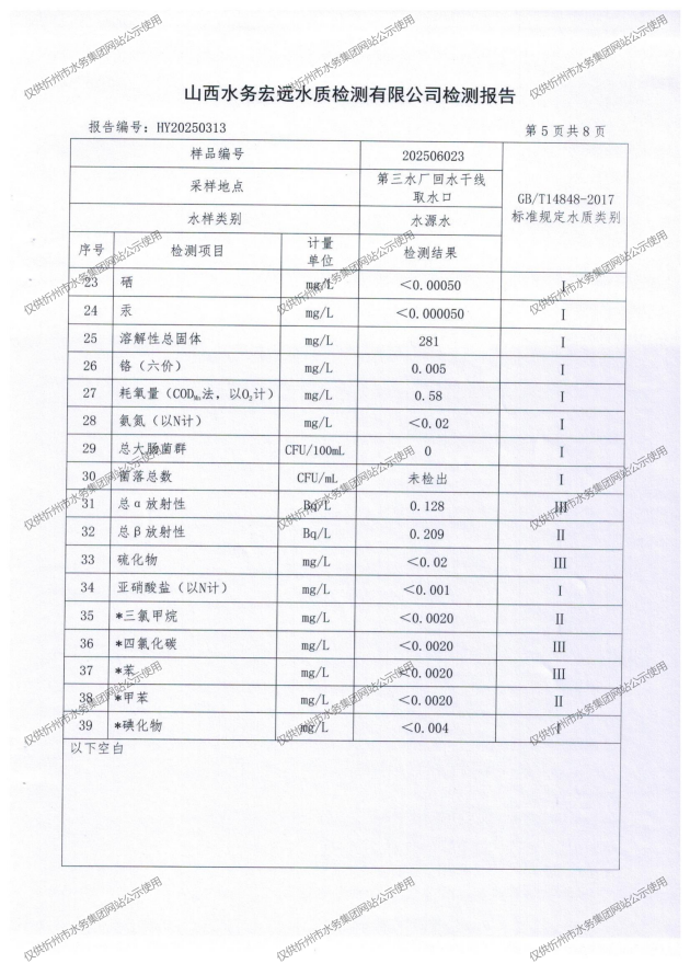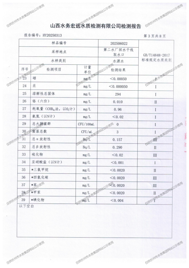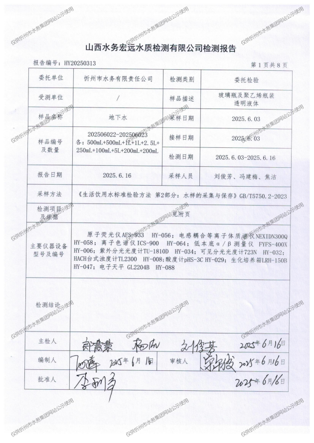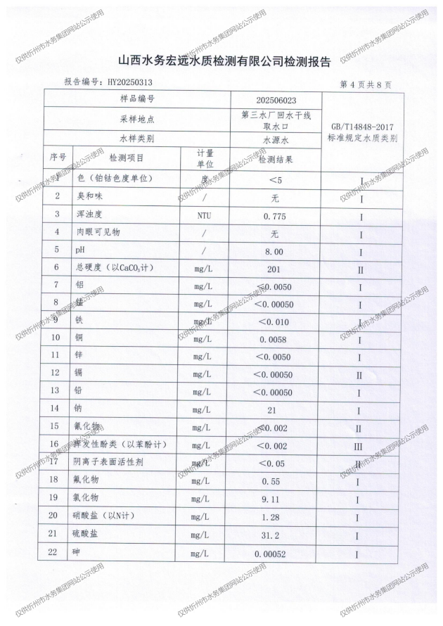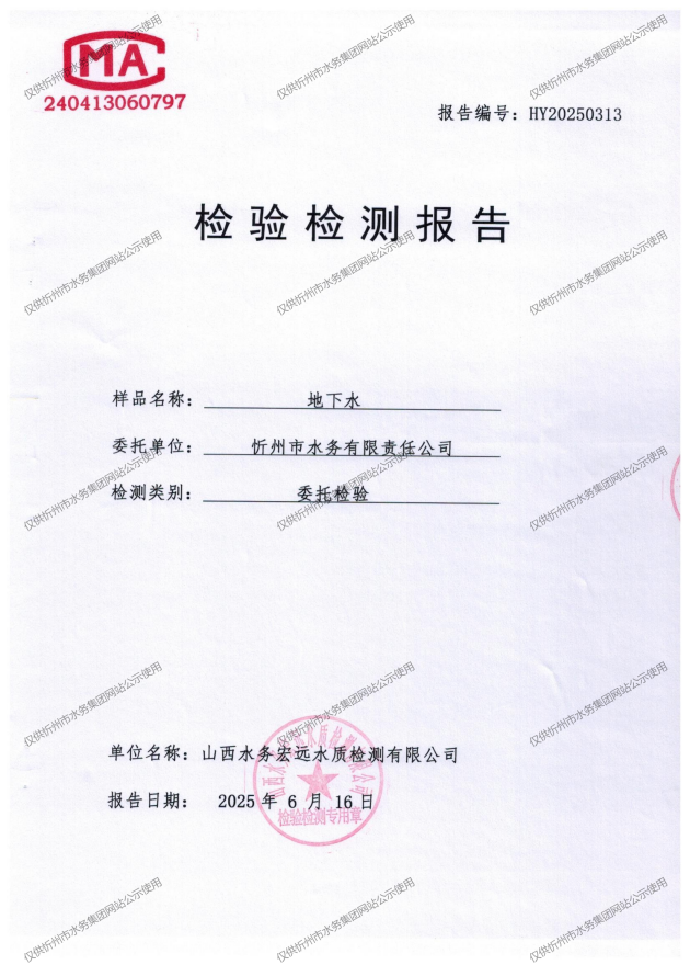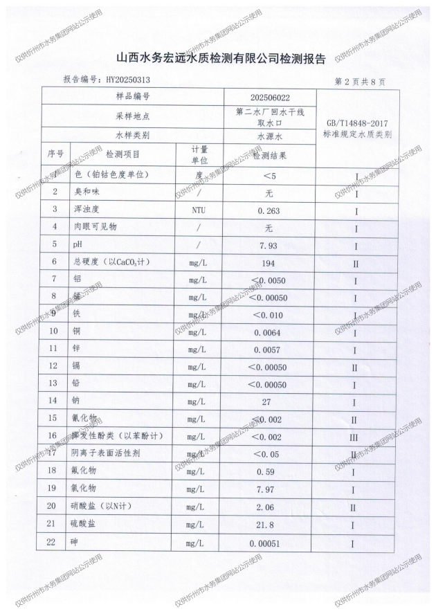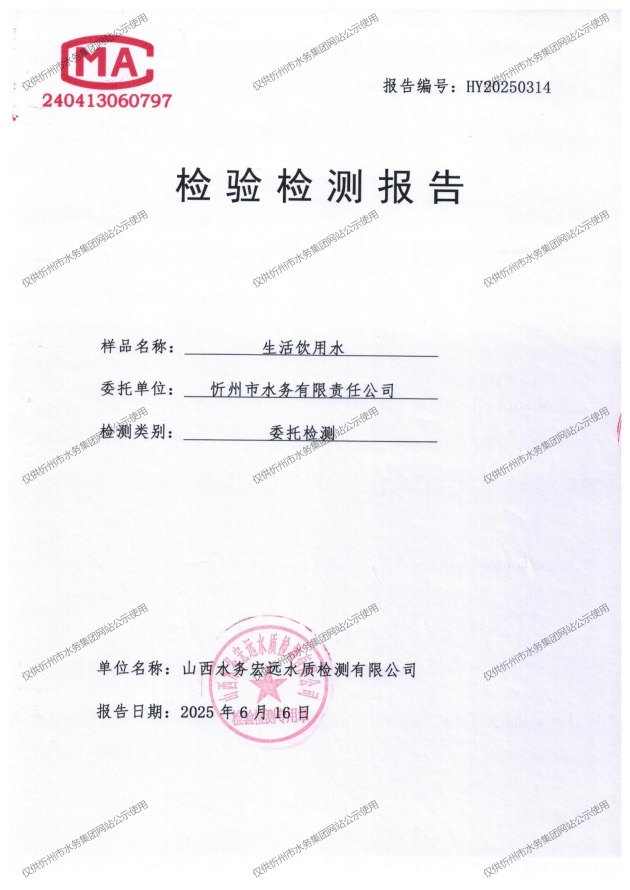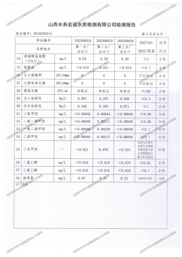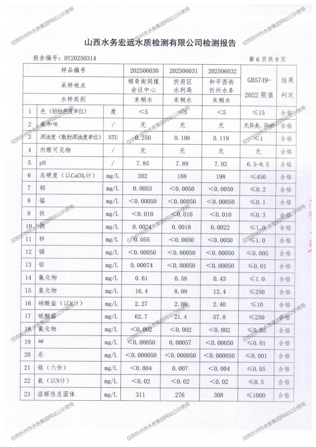 忻州城區公共供水水源水、出廠水、管網水、管網末梢水2025年6月份水質信息公示