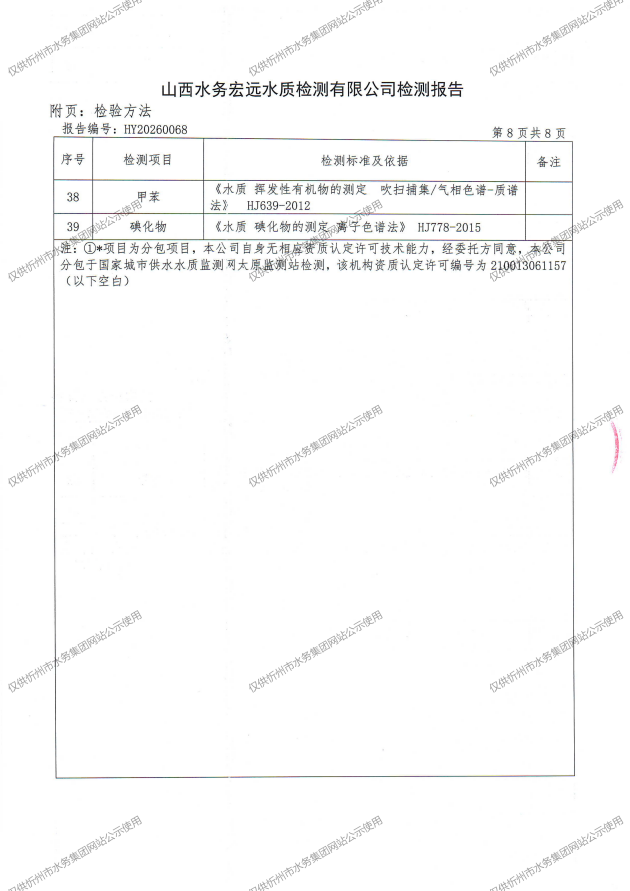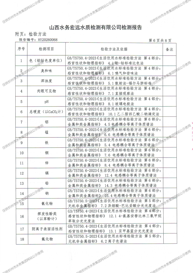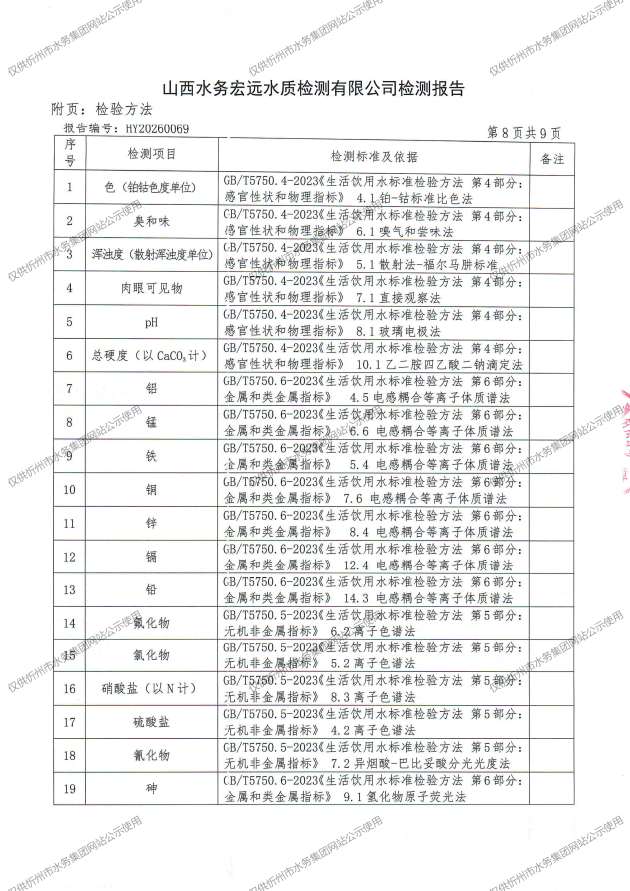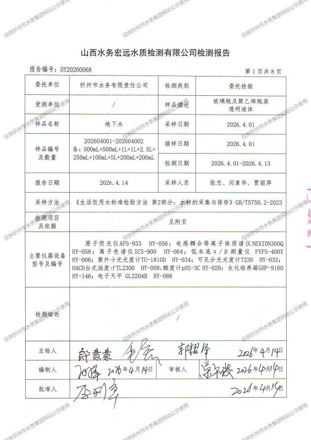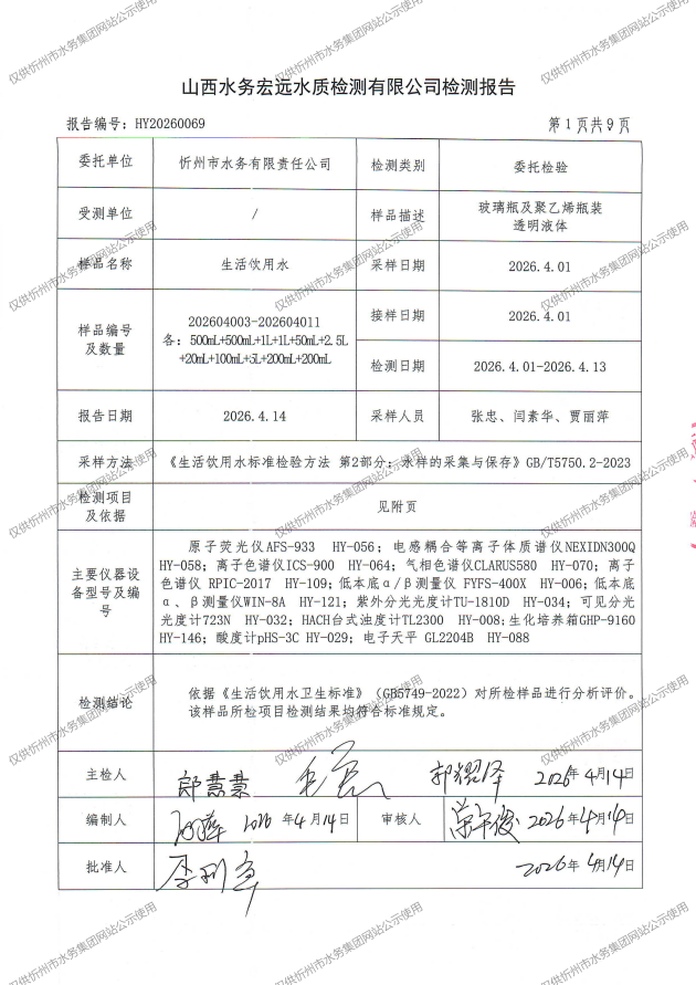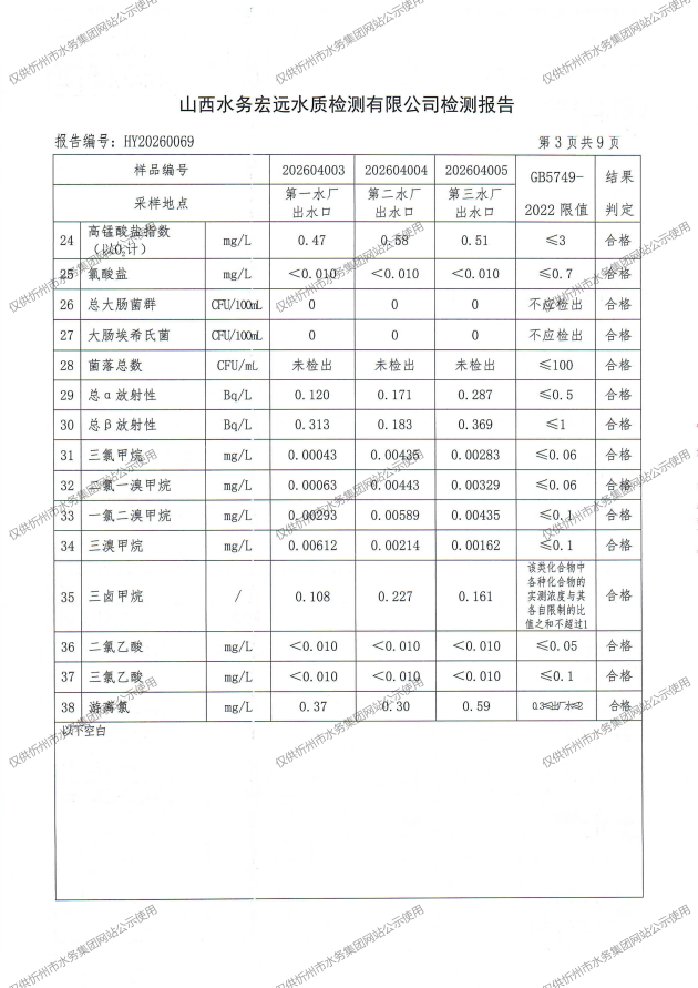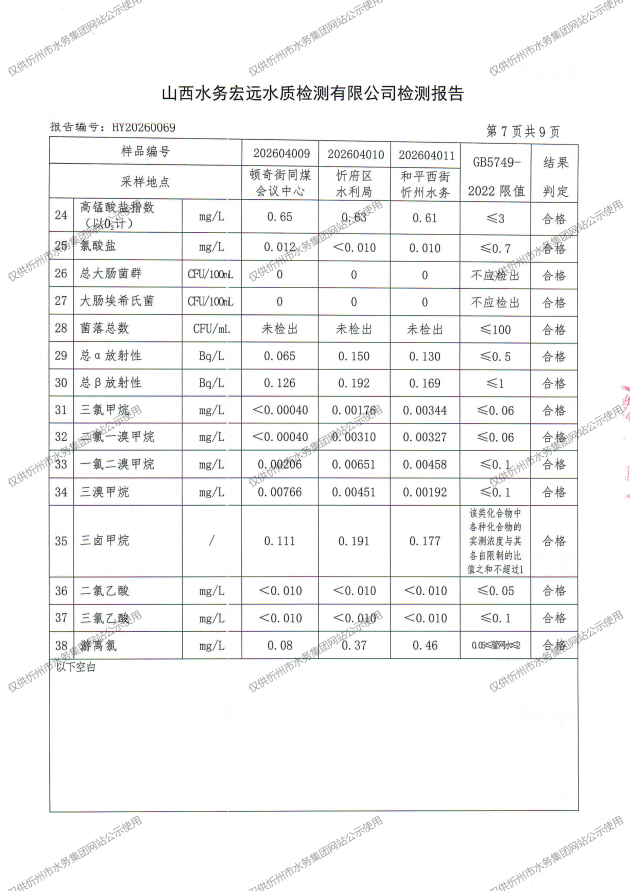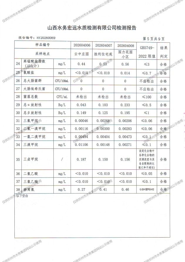 忻州城區(qū)公共供水水源水、出廠水、管網(wǎng)水、管網(wǎng)末梢水2026年4月份水質(zhì)信息公示