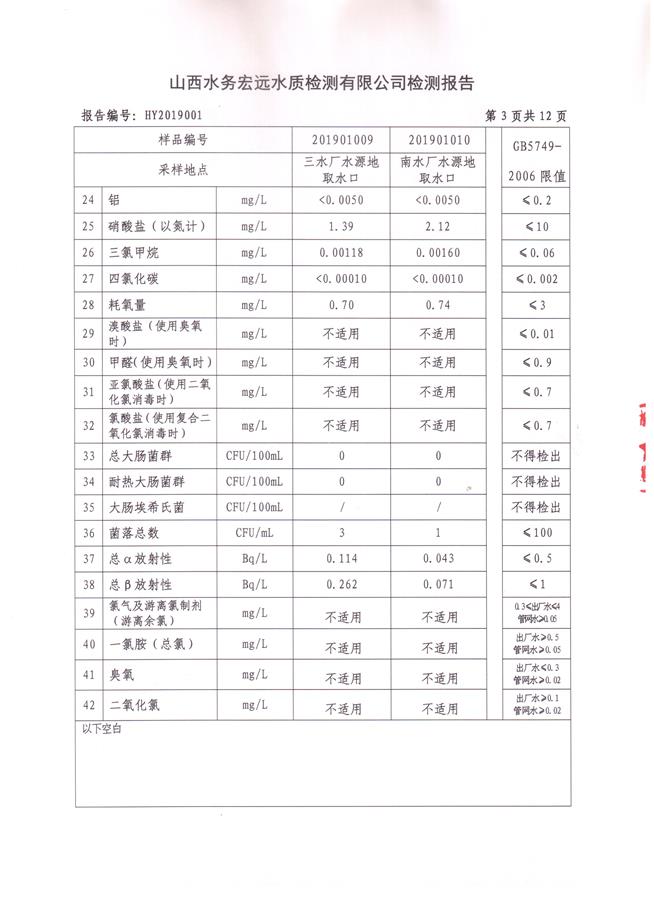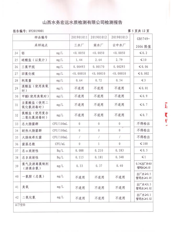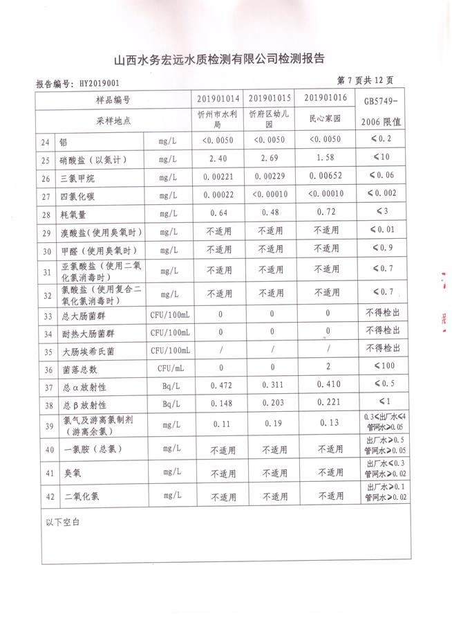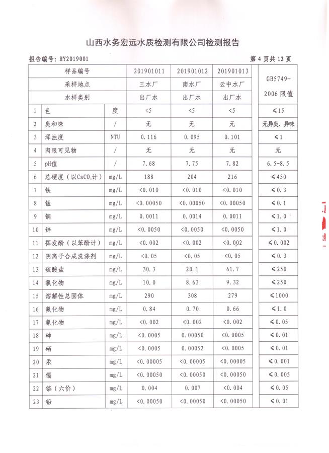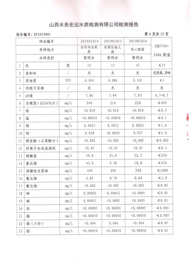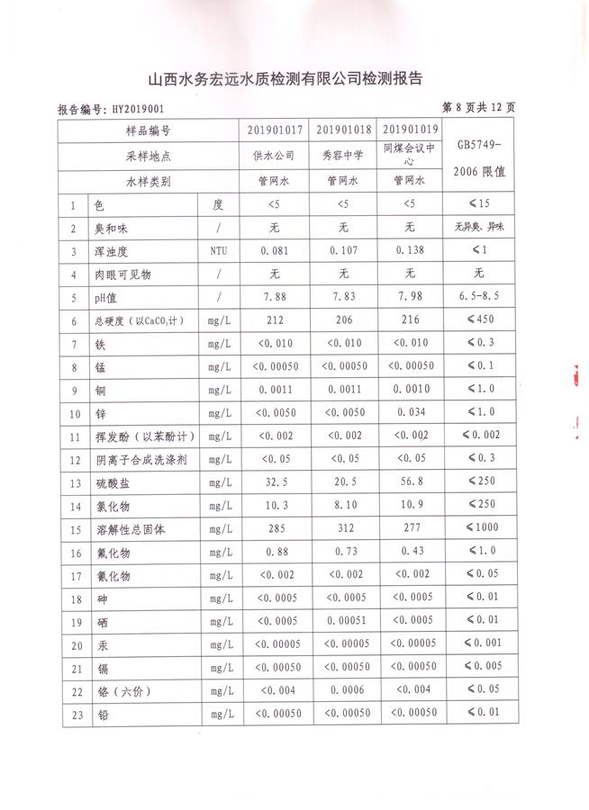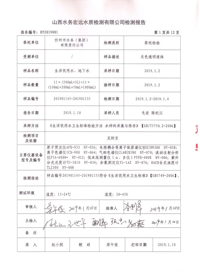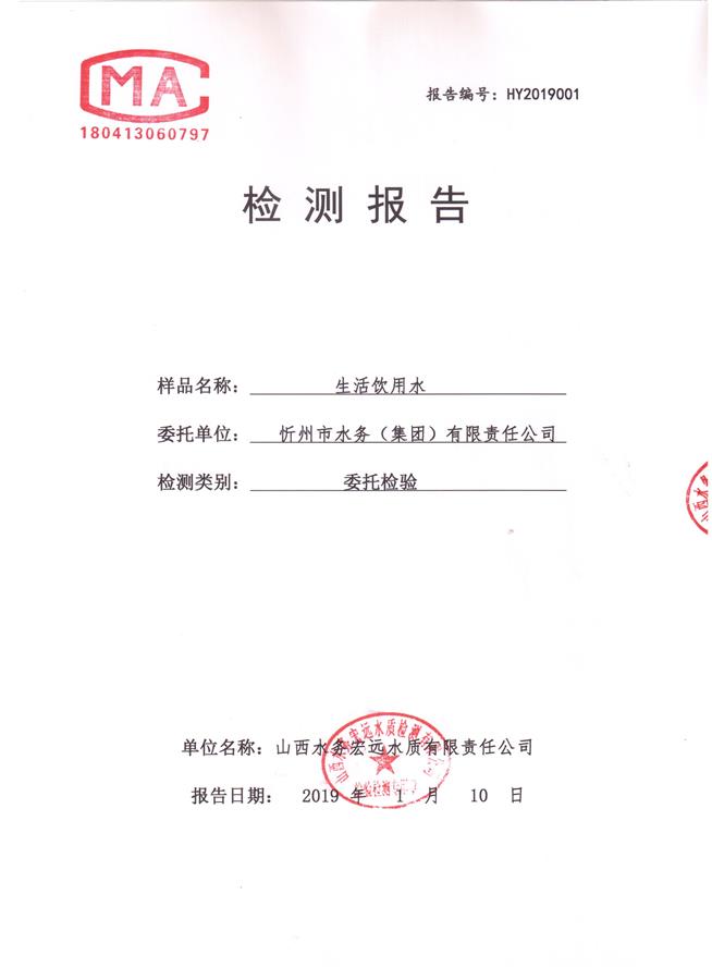 忻州城區公共供水水源水、出廠水、管網水、管網末梢水2019年1月份水質信息公示