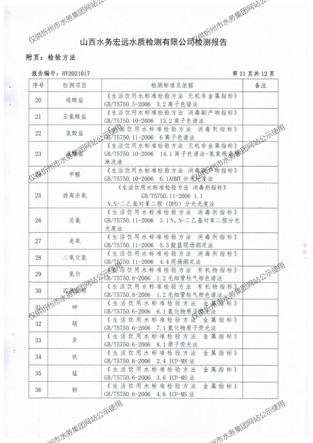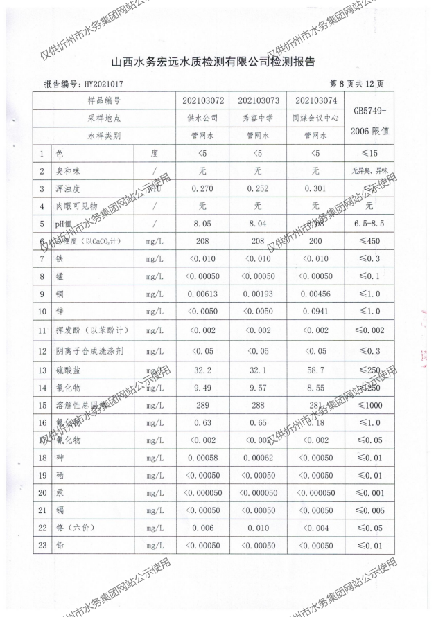 忻州城區公共供水水源水、出廠水、管網水、管網末梢水2021年3月份水質信息公示