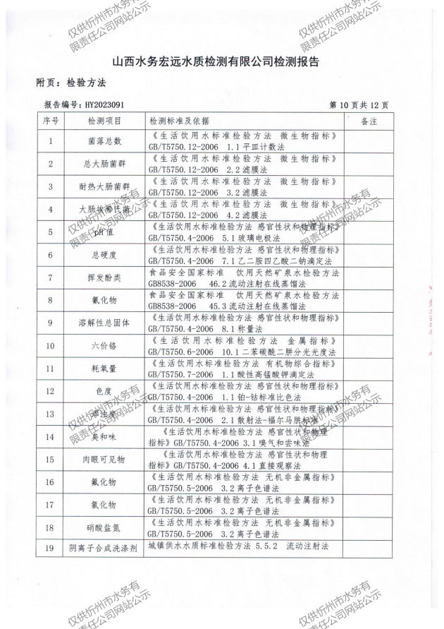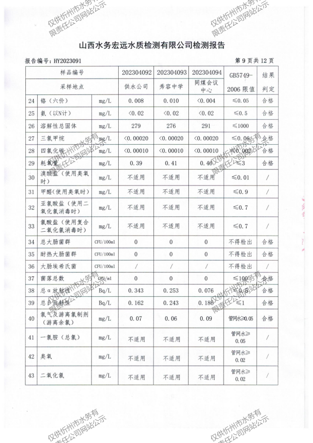 忻州城區公共供水水源水、出廠水、管網水、管網末梢水2023年4月份水質信息公示